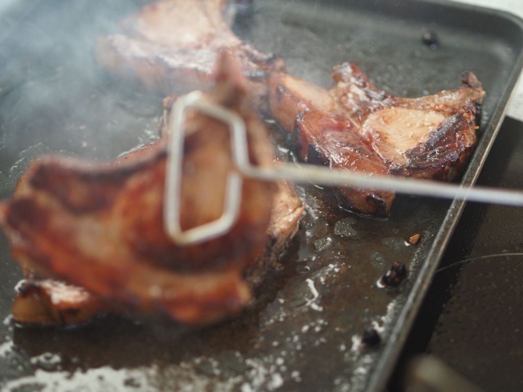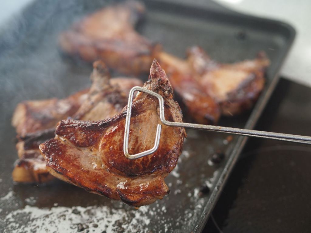 Dann folgte die Jiddische Hühnerleberpastete mit Brioche, wegen der wir überhaupt gekommen waren. Sie war sehr fein, viel feiner als wir uns das vorgestellt haben, und auch gemacht haben, siehe hier. Dazu gab es eine Trockenbeerenauslese 1998, wir nahmen nur ein Glas für zwei.