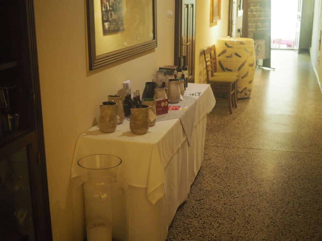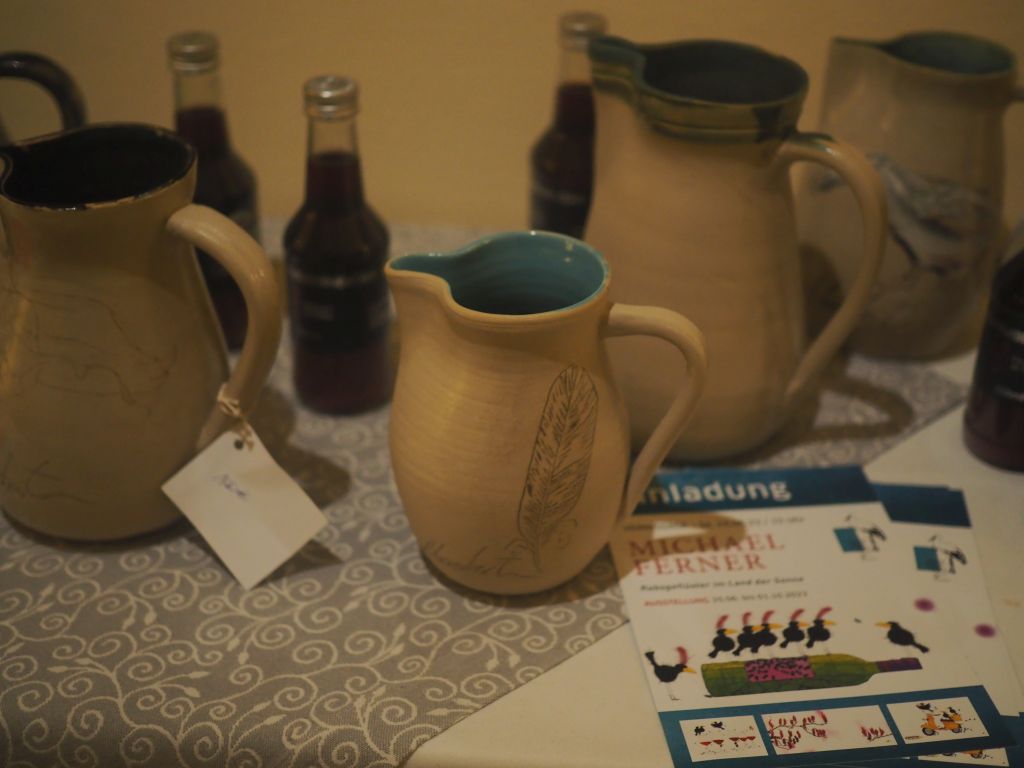 Ein Gast neben uns ließ sich die Rechnung kommen, mit den Worten „Herr Ober? … eine gnädige Rechnung bitte.“ Seit der Großen Inflation sind die Preise sehr gestiegen, nicht nur in der Gastronomie, ein 1-Liter-Tonkrug kostet nun 100 Euro, auch der halbe-Liter-Krug, wie man uns sagte. Sie würden von einer Frau gemacht, die sie 7 Tage lang im Ofen brennt. Wir konnten keinen Rabatt aushandeln (“Machen Sie einen anständigen Preis.“) So blieb das Geld bei uns und der Tonkrug gehörte weiterhin der Dame.