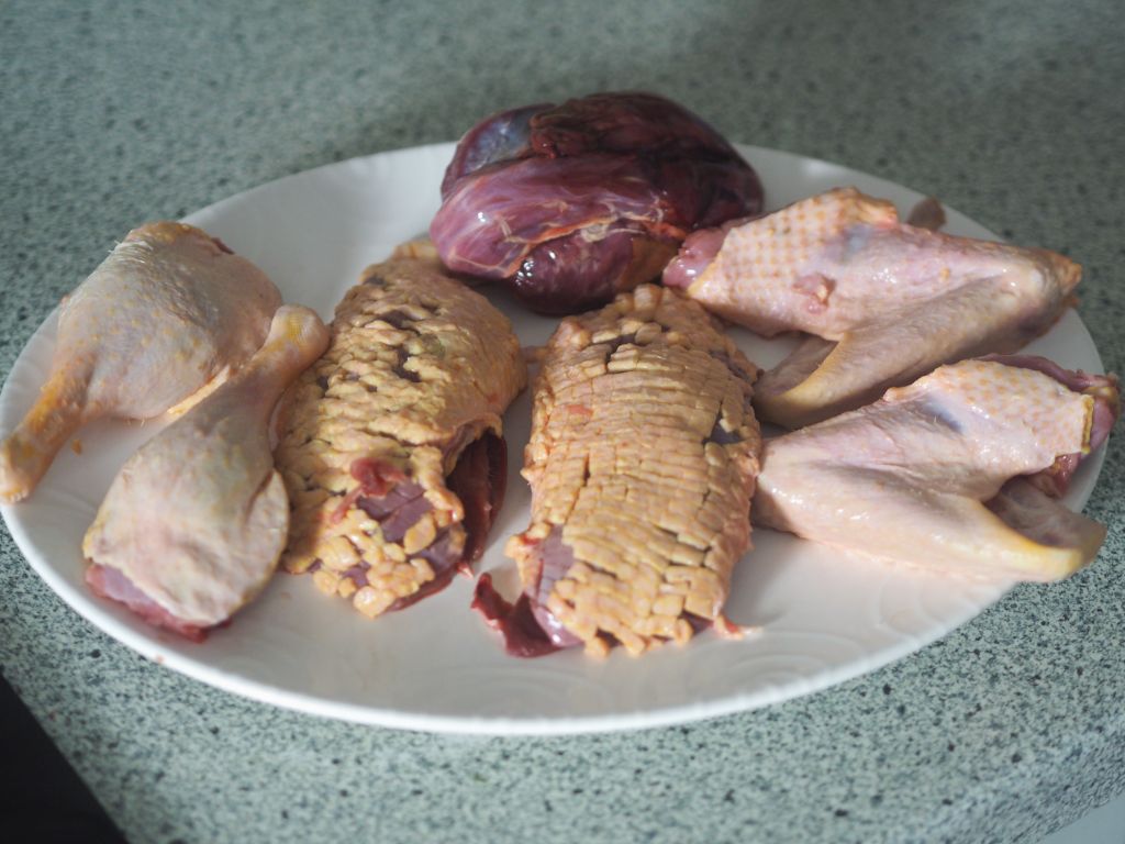 Ein Eigenbaugericht, Tourte wie hier Perlhuhn in Kräuterbutter mit Perlhuhnschenkel in Chicorée-Tourte, nur statt Perlhuhn Schopfbraten und statt Chicorée kommt Wirsing. Dieses Gericht schmeckt so gut, das müssen wir unbedingt wieder haben!