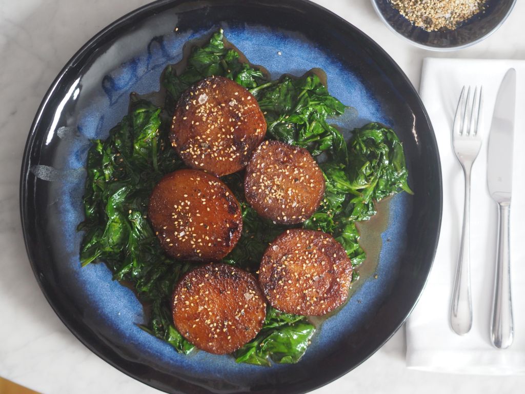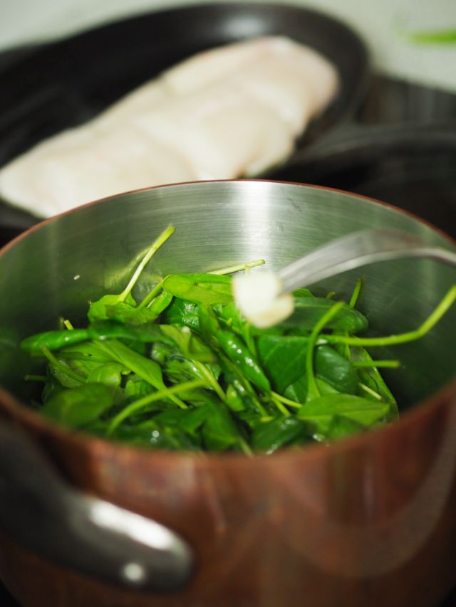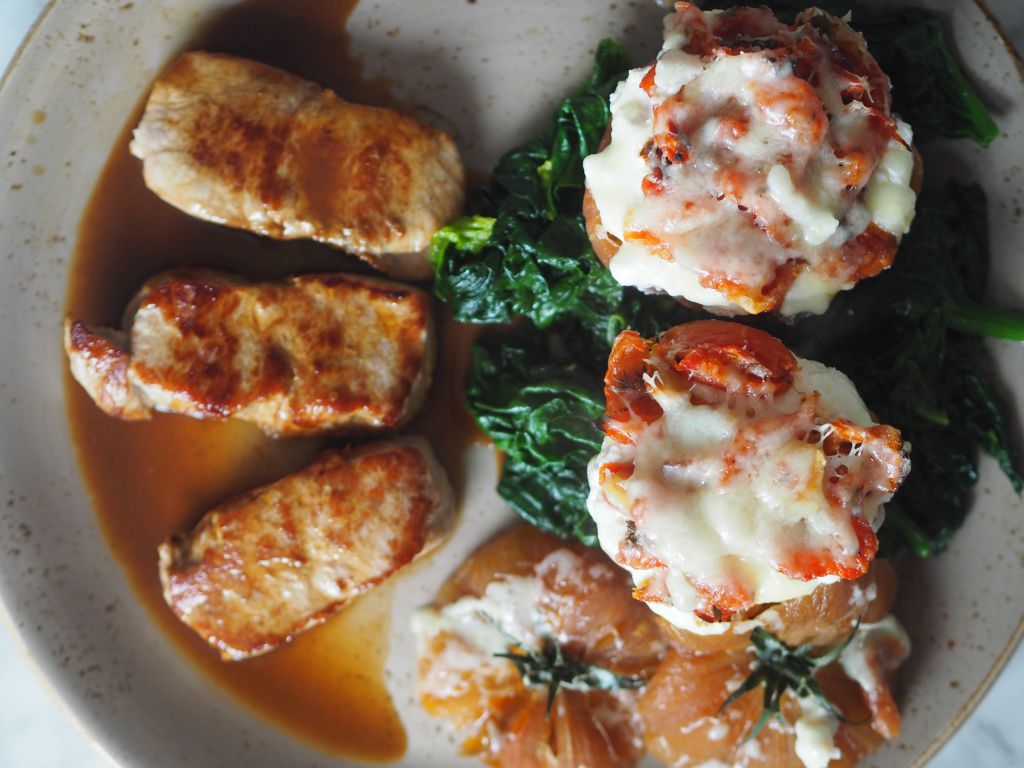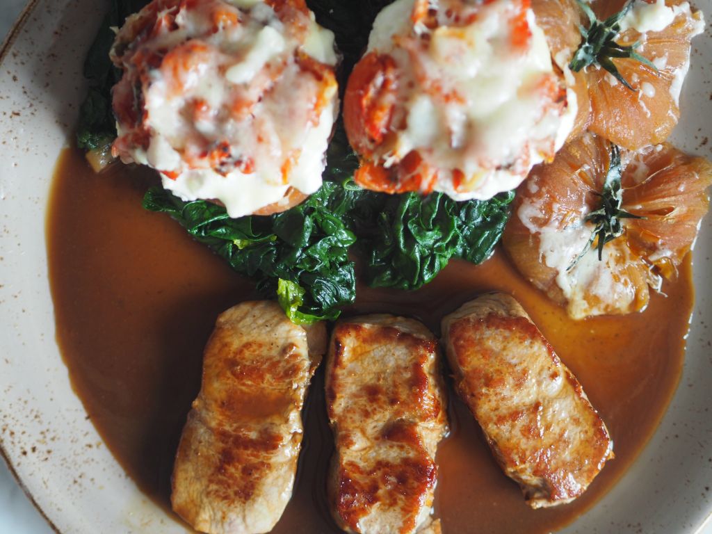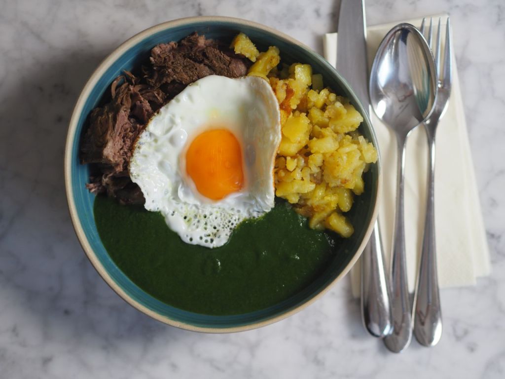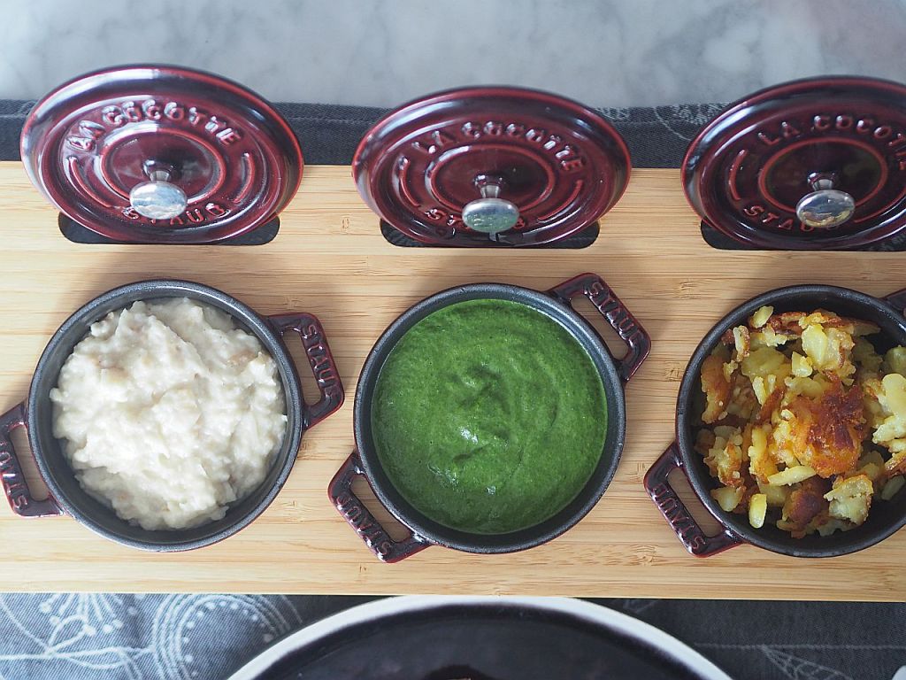 - Durchführung: Mageres Meisl mit Spinat, geröstete Erdäpfeln, Semmelkren und Zuckerhutsalat