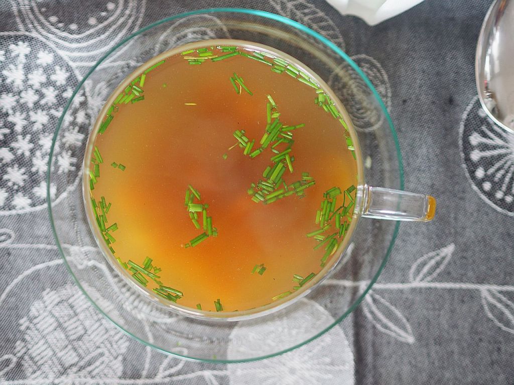 - Das Hauptthema, das Meisl, stellt sich vor, in verdichteter Form – flüssig – und anderer Tonart – als Suppe.