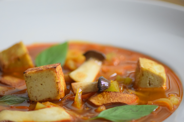 200 g Tofu zerzupfen. Sojasoße mit geriebenem Knoblauch verrühren. Den Tofu gut einlegen. Und eine Zeitlang marinieren lassen, wir ca. ¾ Stunde lang. In der Zwischenzeit 150 g Shii-Take-Pilze in wenig Kokosöl anbraten und in einen größeren Topf geben. 7 Pak Choi teilen, in der Pfanne mit wenig Kokosöl braten, zu den Pilzen geben. Selbiges mit den 4 in Scheiben geschnittene Jungzwiebeln machen. Dann den marinierten Tofu auch anbraten, und zum Gemüse geben. In der Zwischenzeit eine gute Handvoll Brokkoliröschen in Salzwasser blanchieren und auch dazugeben. 200 ml warme Gemüsebrühe mit 50 g Erdnußmus verrühren und dazugeben. Verrühren und ein paar Min. leise köcheln lassen. In der Zwischenzeit Erdnüsse in der Pfanne anrösten, Koriander grob hacken. Pak-Choi-Tofu mit den gerösteten Erdnüssen und Koriander servieren,