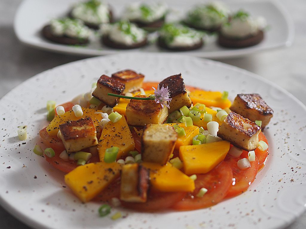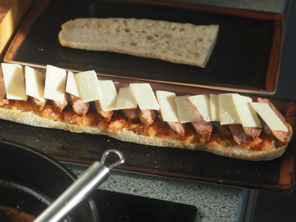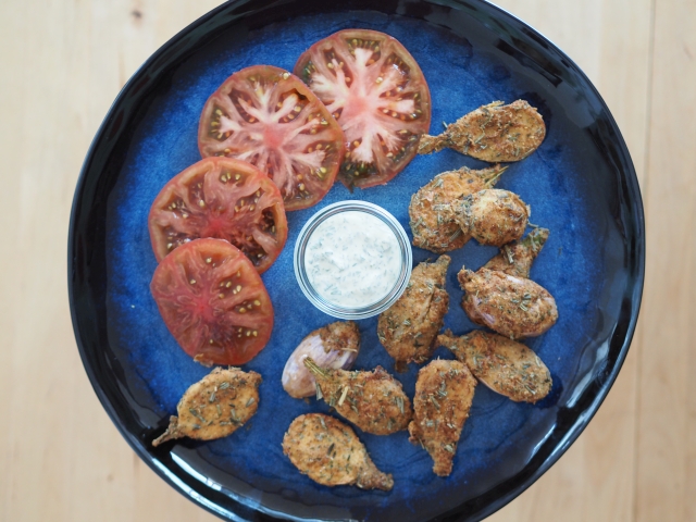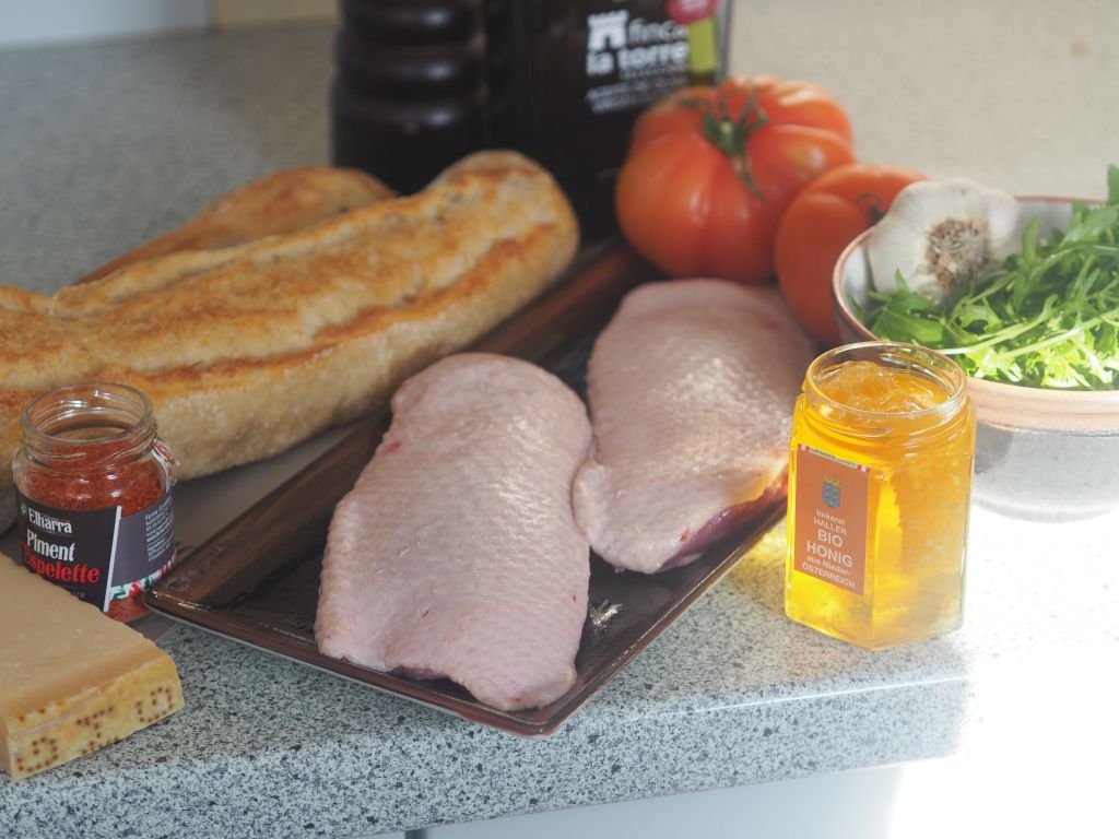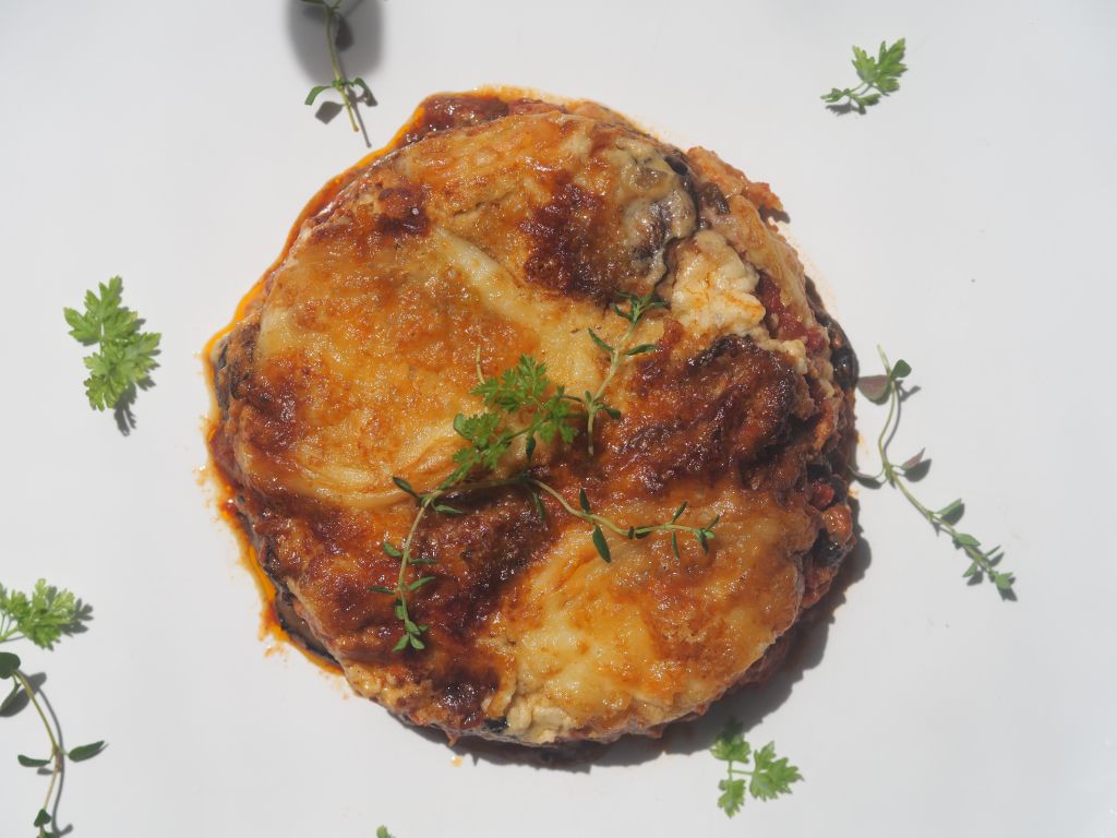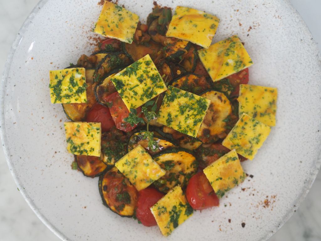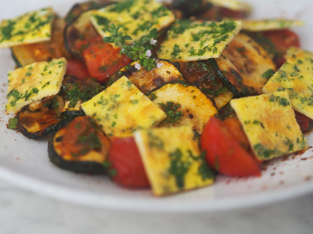 Die Tomatensauce kommt extra dazu und nicht rein in die Fülle, das ist so erfrischend. Harissa ergibt eine feine Schärfe. Ziegenkäse statt Mozzarella wegen überzüchteter Kuh, Stichwort A1-Milch.