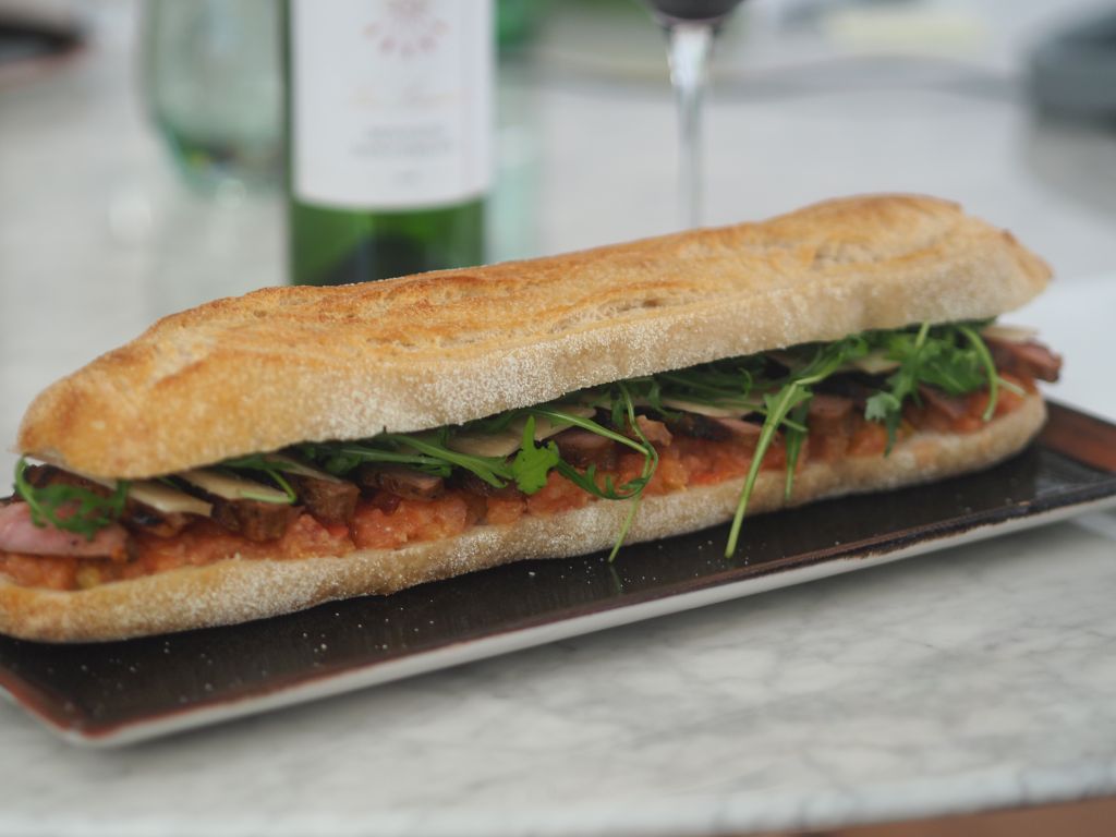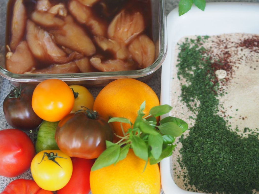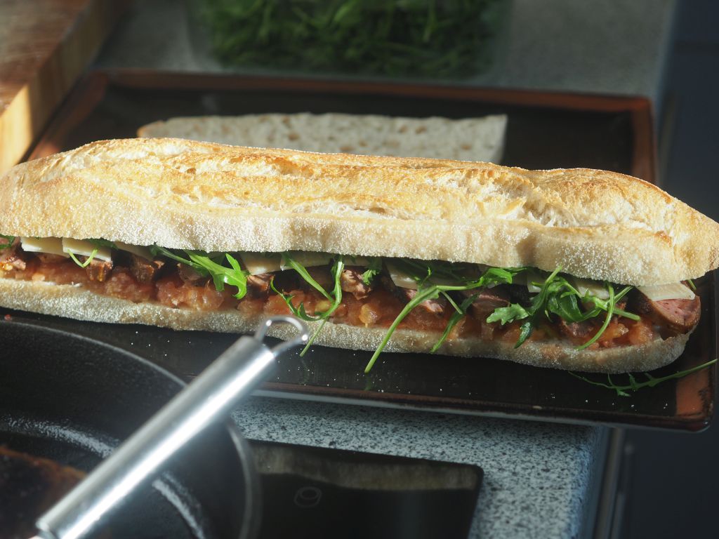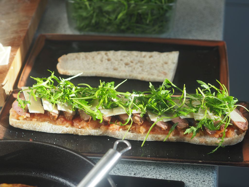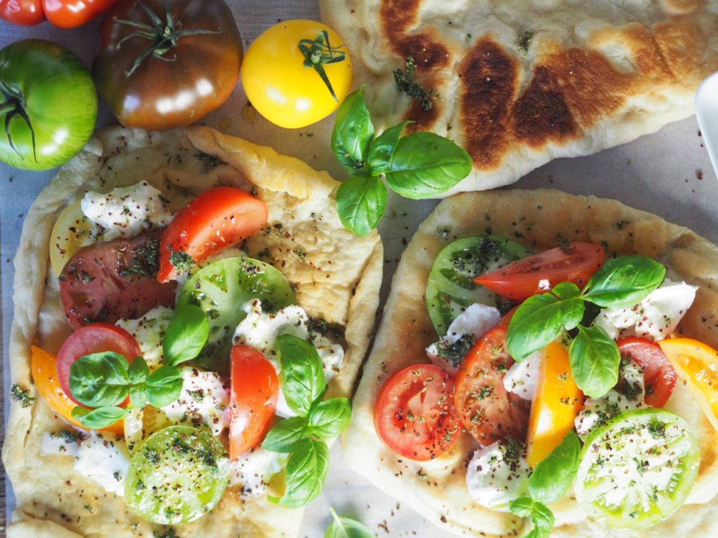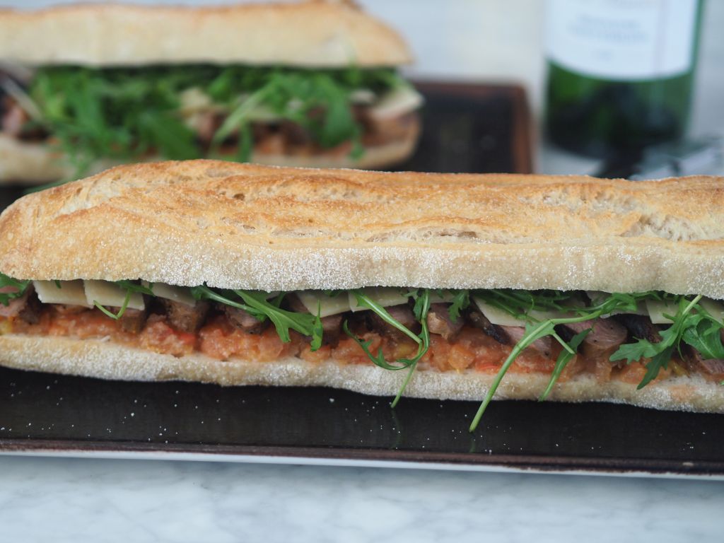 Die Tomatensauce kommt extra dazu und nicht rein in die Fülle, das ist so erfrischend. Harissa ergibt eine feine Schärfe. Ziegenkäse statt Mozzarella wegen überzüchteter Kuh, Stichwort A1-Milch.