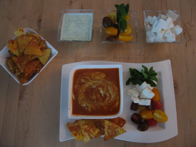 Wir wollten doch nur eine Tomatensuppe. Jedoch mussten wir einsehen, dass man eine Tomatensuppe nicht nur so hinstellen kann, das sieht irgendwie nackert aus.