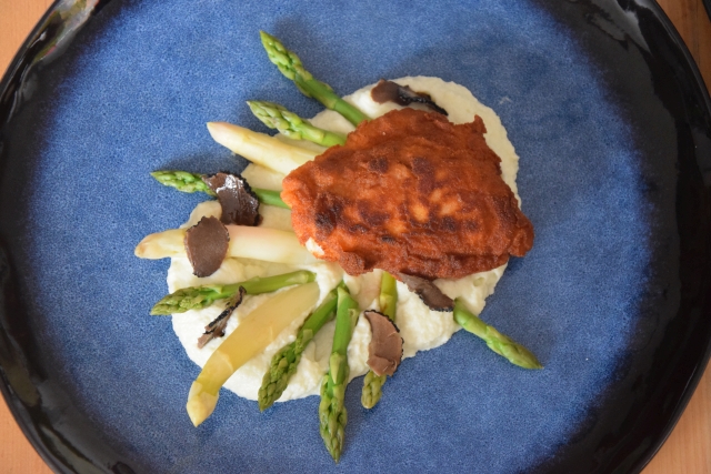Das Bullinarium ist ein Restaurant mit angeschlossenem Bauernhof für die Rinderwirtschaft. Das Futter kommt von den umliegenden Wiesen des Lafnitztals, dem Ramsar Schutzgebiet. Der Stallmist wird zu Biogas verwertet, damit werden 3.000 Haushalte mit Strom versorgt. Treibhausgase ade! So geht öko: Klimaschutz mit Tieren! Christoph Haller hat sich in Markt Allhau im Burgenland eine eigene Welt erschaffen. Um so mehr Freude macht es, ein Steak vom Bullinarium zu bekommen. gurkerl.at hat ein großes Sortiment davon. Heute gibt es Tournedos mit Apfelkreme, Kohlsprossenblättern und Erdäpfelchips. Obendrauf kommt ein Tupfen Gänseleberpastete. Und eine Trüffelscheibe.
