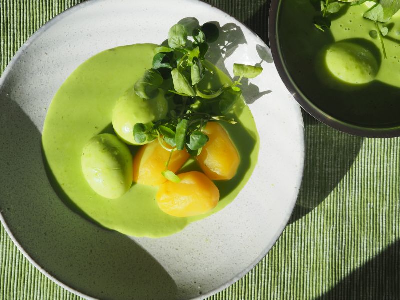 Seit langem wieder ein Rezept mit Espuma. In Eigenbaurezepten und wenn wir die Muße dafür haben, können wir nach Herzenslust gestalten; in Kochbuchrezepten kommt Espuma ja so gut wie nicht vor.