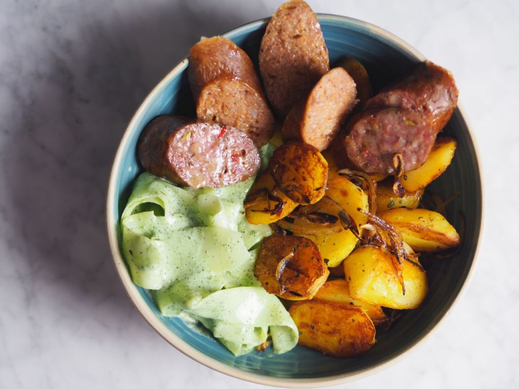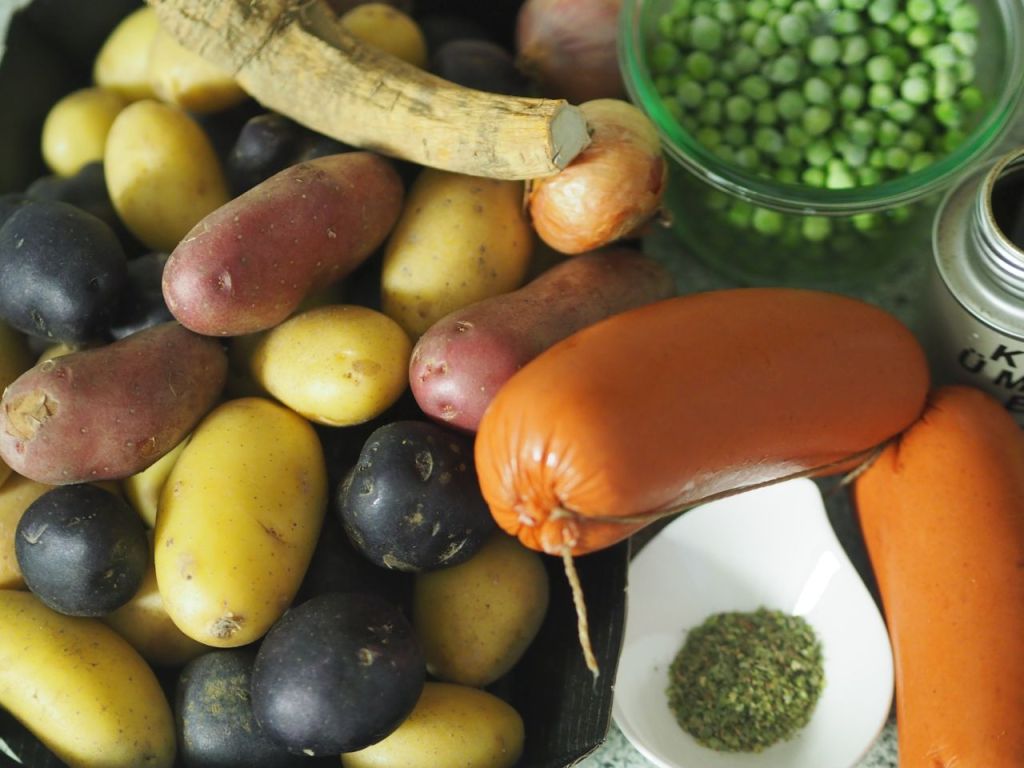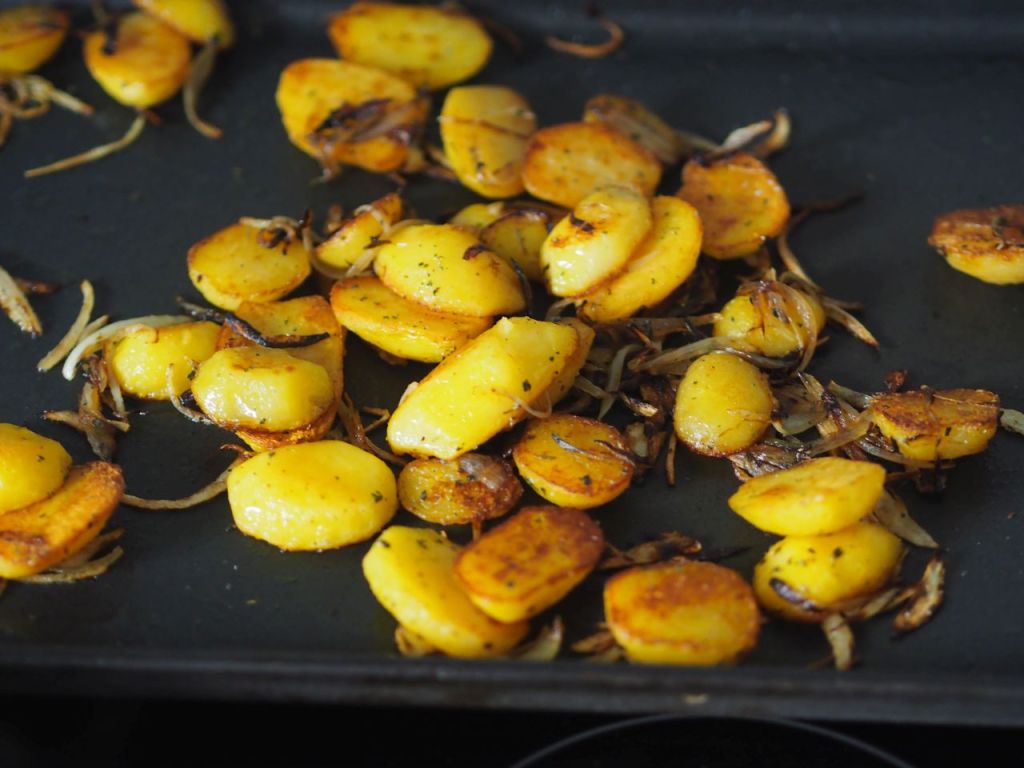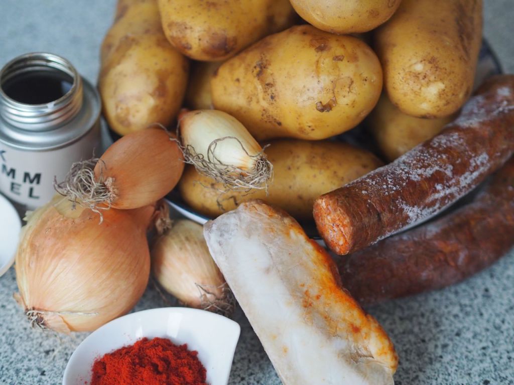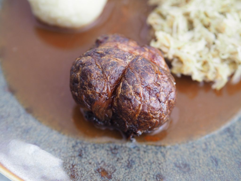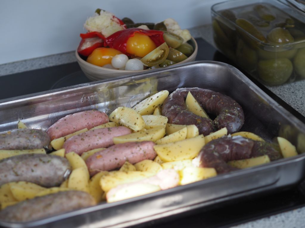 Eine Zwiebel hacken. Zwei Eßlöffel Butter, einen Eßlöffel Olivenöl in einer Kasserolle erhitzen, die verhackte Zwiebel dazu geben und anschwitzen. In der Zwischenzeit den Schinken und das Gselchte (Kasseler genannt in Deutschland) insgesamt zirka ein halbes Kilo in Stücke schneiden und dazugeben. Etwa 10 Minuten bei mittlerer Hitze braten. Einen Topf mit Wasser aufsetzen, salzen und die 400 Gramm Dinkel-Fleckerl ohne Ei bißfest garen. Zum Gselchten geben, durchrühren, ein Ei darüber schlagen, mit etwas Kochwasser verdünnen und mit einem Salat servieren.