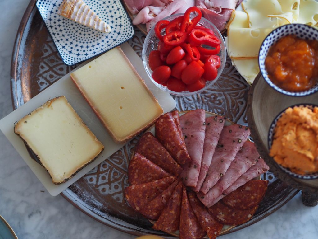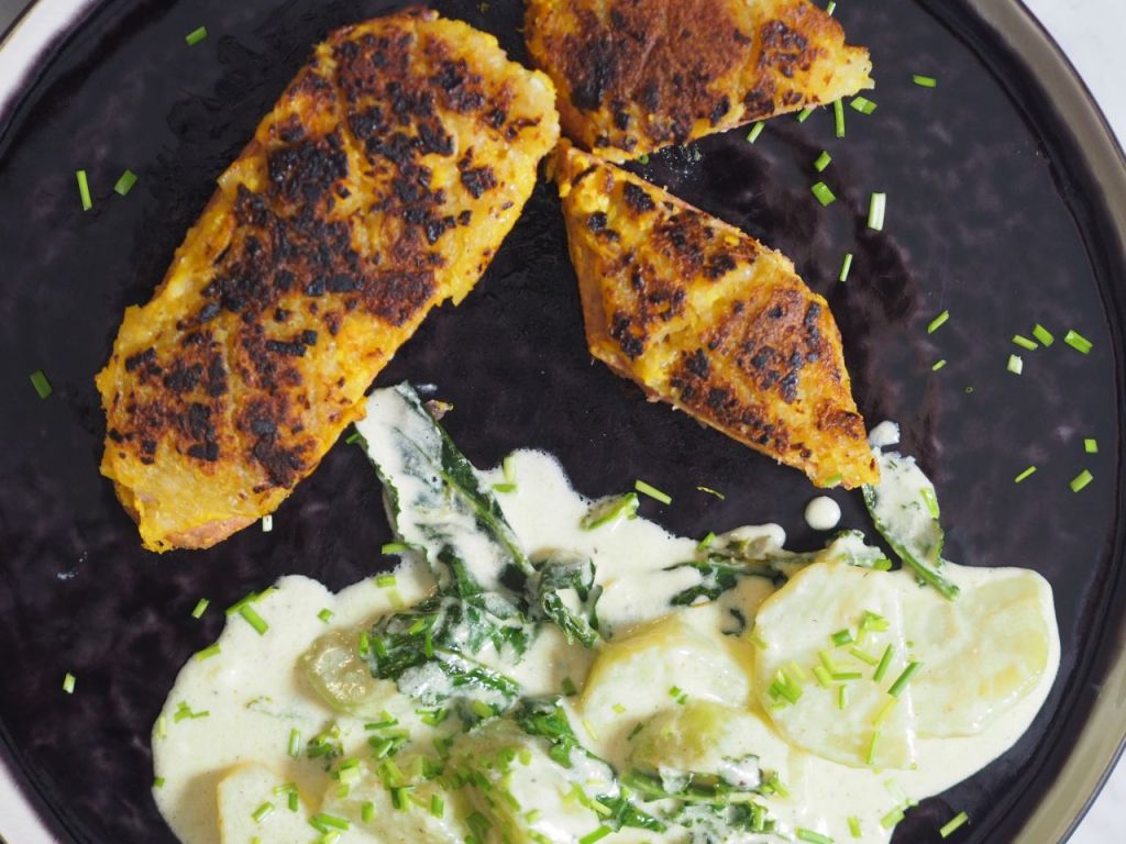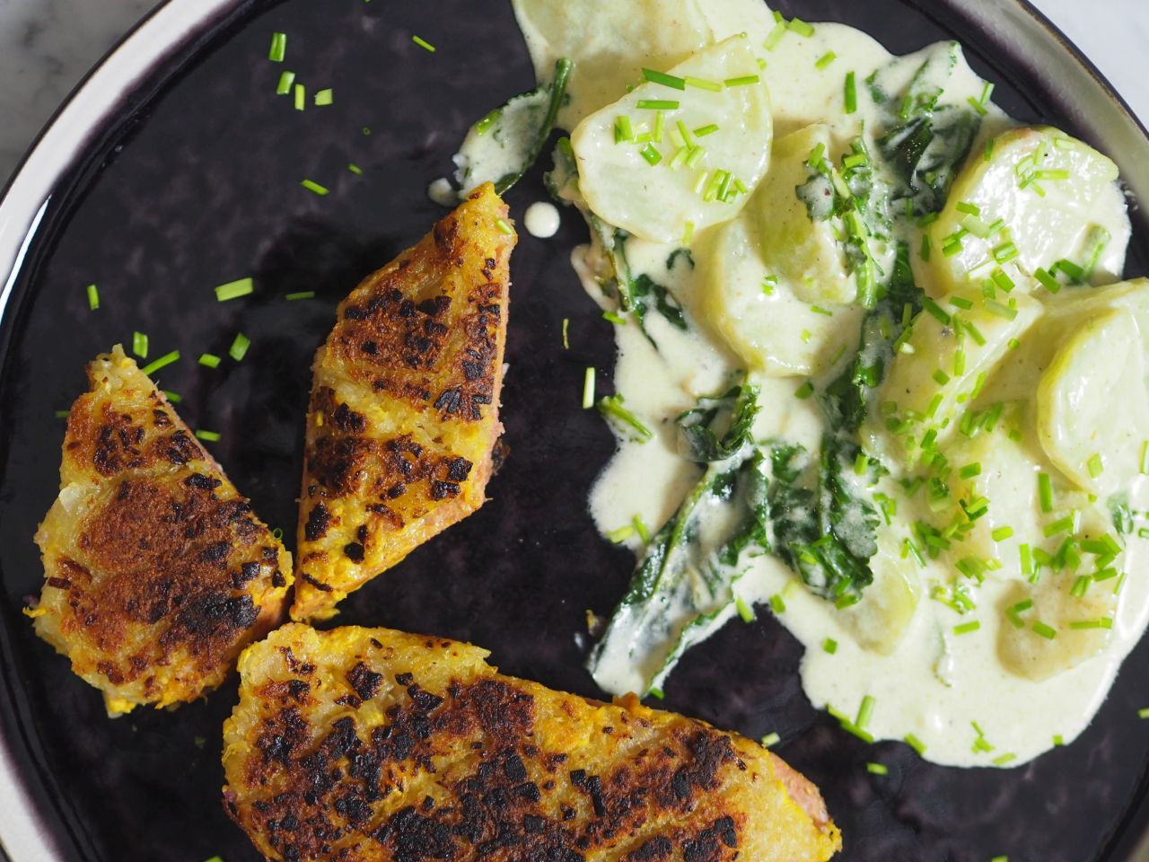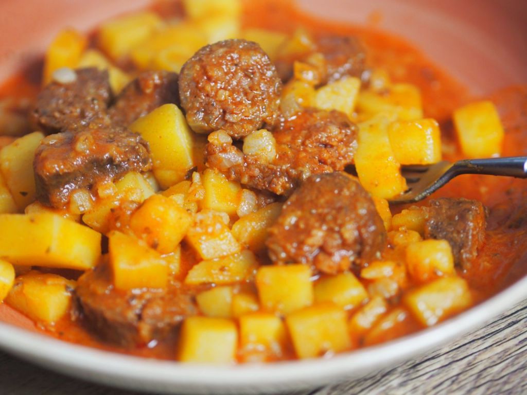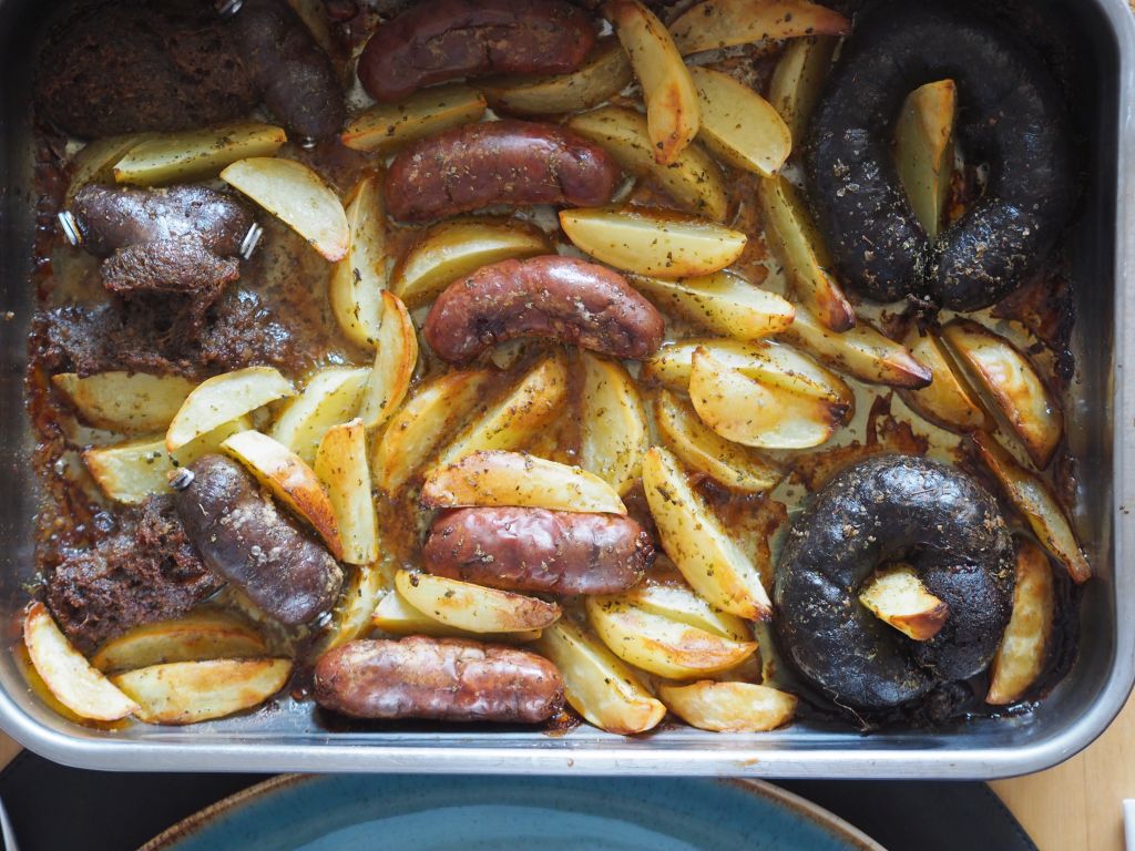 Eine Zwiebel hacken. Zwei Eßlöffel Butter, einen Eßlöffel Olivenöl in einer Kasserolle erhitzen, die verhackte Zwiebel dazu geben und anschwitzen. In der Zwischenzeit den Schinken und das Gselchte (Kasseler genannt in Deutschland) insgesamt zirka ein halbes Kilo in Stücke schneiden und dazugeben. Etwa 10 Minuten bei mittlerer Hitze braten. Einen Topf mit Wasser aufsetzen, salzen und die 400 Gramm Dinkel-Fleckerl ohne Ei bißfest garen. Zum Gselchten geben, durchrühren, ein Ei darüber schlagen, mit etwas Kochwasser verdünnen und mit einem Salat servieren.