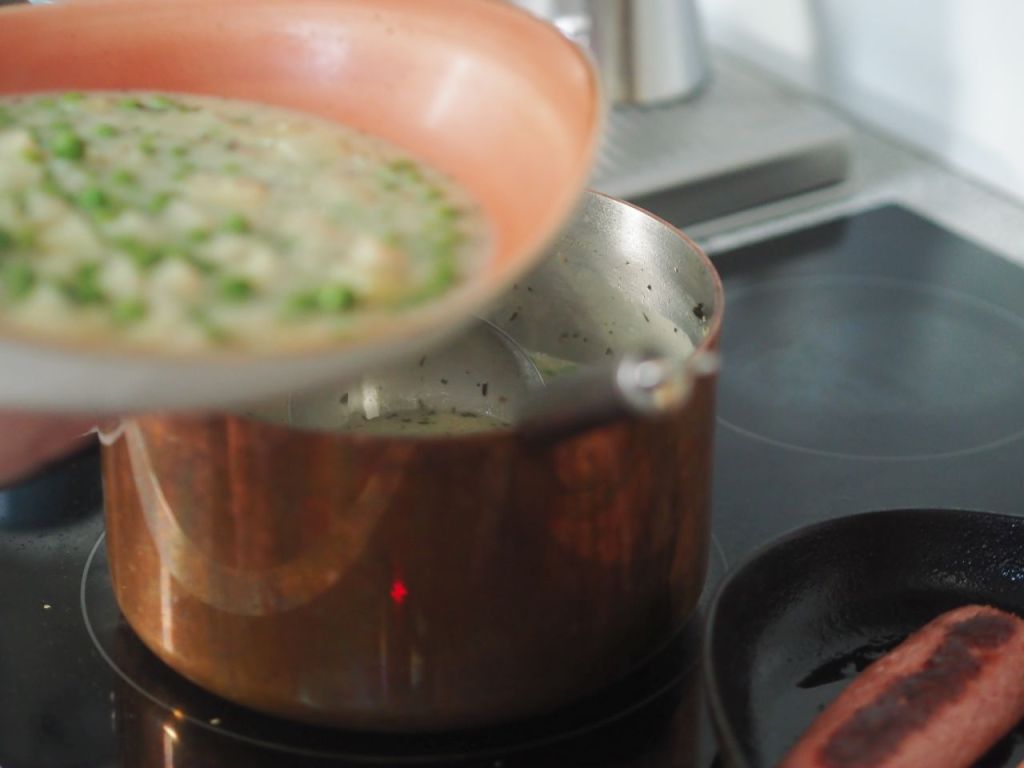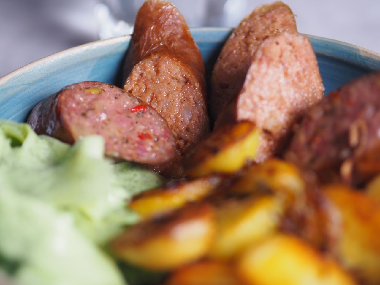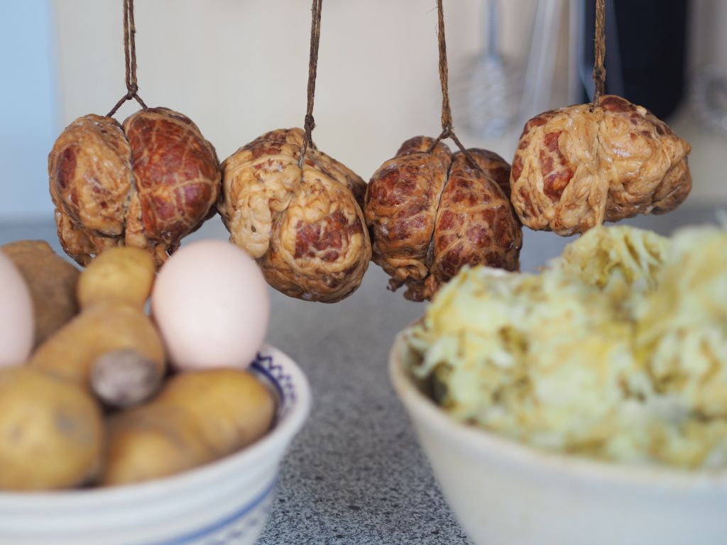 Es gibt Nudeln, bei denen schon Ei drin ist, aber wer weiß schon, woher es stammt und unter welchen Bedingungen es produziert wurde: Freiland, Bodenhaltung oder gar in Österreich verbotene Käfighaltung? Bei verarbeiteten Lebensmitteln – und Nudeln sind nun mal solche – fehlt ja gelegentlich die Kennzeichnung; der österreichische Nudelhersteller Recheis ist da die löbliche Ausnahme, der verwendet tatsächlich nur österreichische Eier für seine Nudeln. Die Firma Wolf im Burgenland hat ihre Eier von der eigenen Hühnerfarm. Wenn wir aber das Ei selber darüberschlagen, können wir uns für noch mehr Qualität entscheiden: das Ei in diesen Schinkenfleckerln heute war von einem österreichischen Wanderhuhn, also mit viel Auslauf im Freien.
