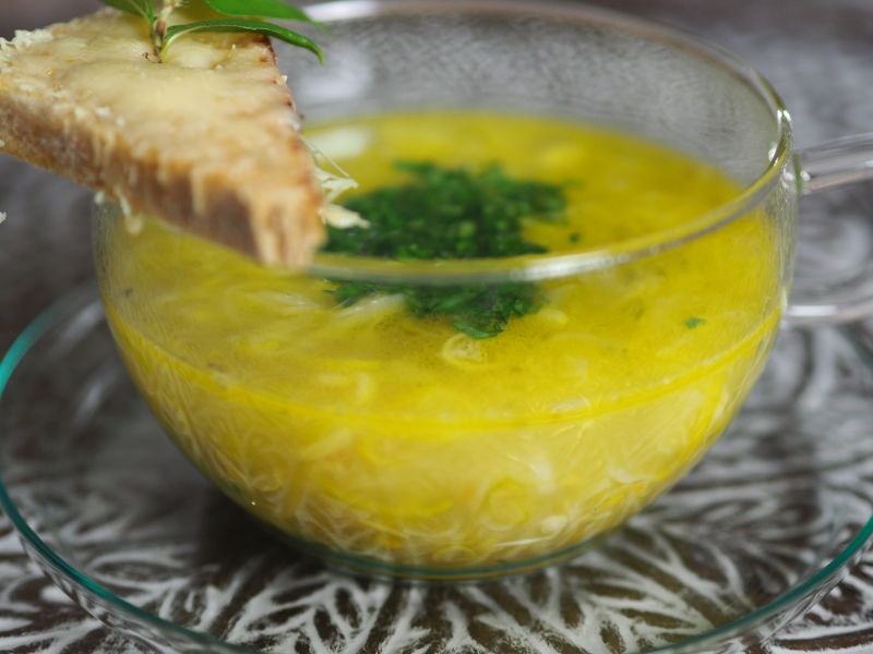 Wir haben den Rostbraten mit einer frisch gemachten Rindsuppe abgelöscht. Man kann auch Wasser nehmen, aber wir hatten – wirklich nur rein zufällig – sowieso frisch eine Rindsuppe gemacht, nämlich zum nächste Woche Mitnehmen in die Firma: durch die Corona-Umstellungen ist das Mittagessen im Büro ein bisserl aus den Fugen geraten. Aber nun wird es ja bald wieder in geordneten Bahnen verlaufen – wir sind frohen Mutes.